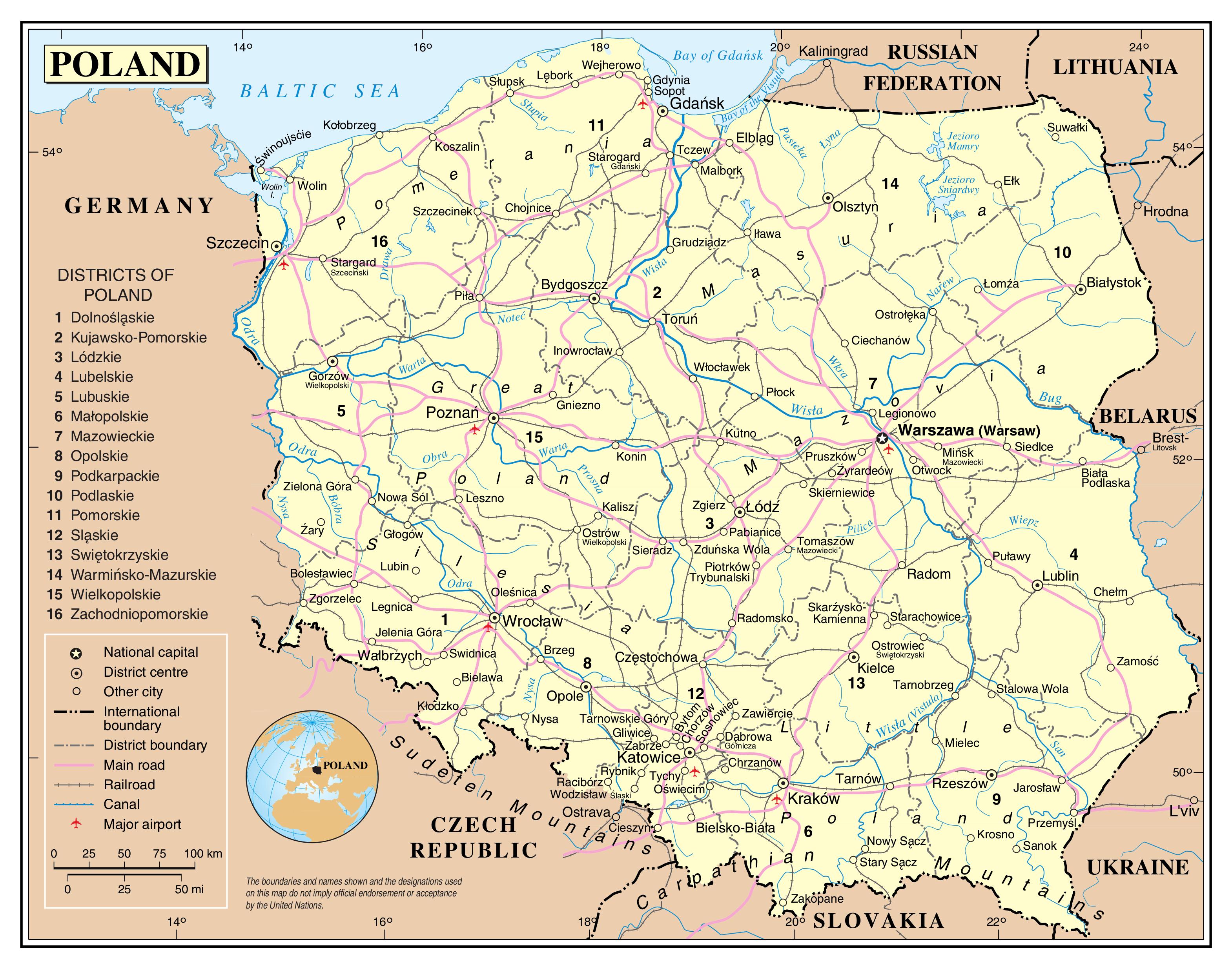 Carte de la Pologne transports. Pologne transports de la carte (Europe de l'est - Europe) à imprimer. Pologne transports de la carte (Europe de l'est - Europe) à télécharger. Le transport en Pologne implique le trafic aérien, les voies navigables, les routes et les chemins de fer. En tant que pays situé au "carrefour" de l'Europe, la Pologne, avec son économie développée, est une nation dotée d'un vaste réseau d'infrastructures de transport de plus en plus moderne. La plupart des villes polonaises disposent de réseaux de transports publics bien développés. Selon la ville, il s'agit de bus, de tramways, de trolleybus, de trains et de métros, comme le montre la carte des transports en Pologne. Il est généralement judicieux d'acheter un billet à long terme, car il est difficile d'éviter les transports publics. Le transport urbain représente la majeure partie du transport de passagers en Pologne en termes de nombre de passagers. Il existe dans environ 260 villes et municipalités habitées par 17 millions de personnes. Les entreprises de transport urbain transportent environ 3,7 milliards de passagers par an, ce qui représente environ 80% du nombre total de passagers dans le secteur des transports publics.